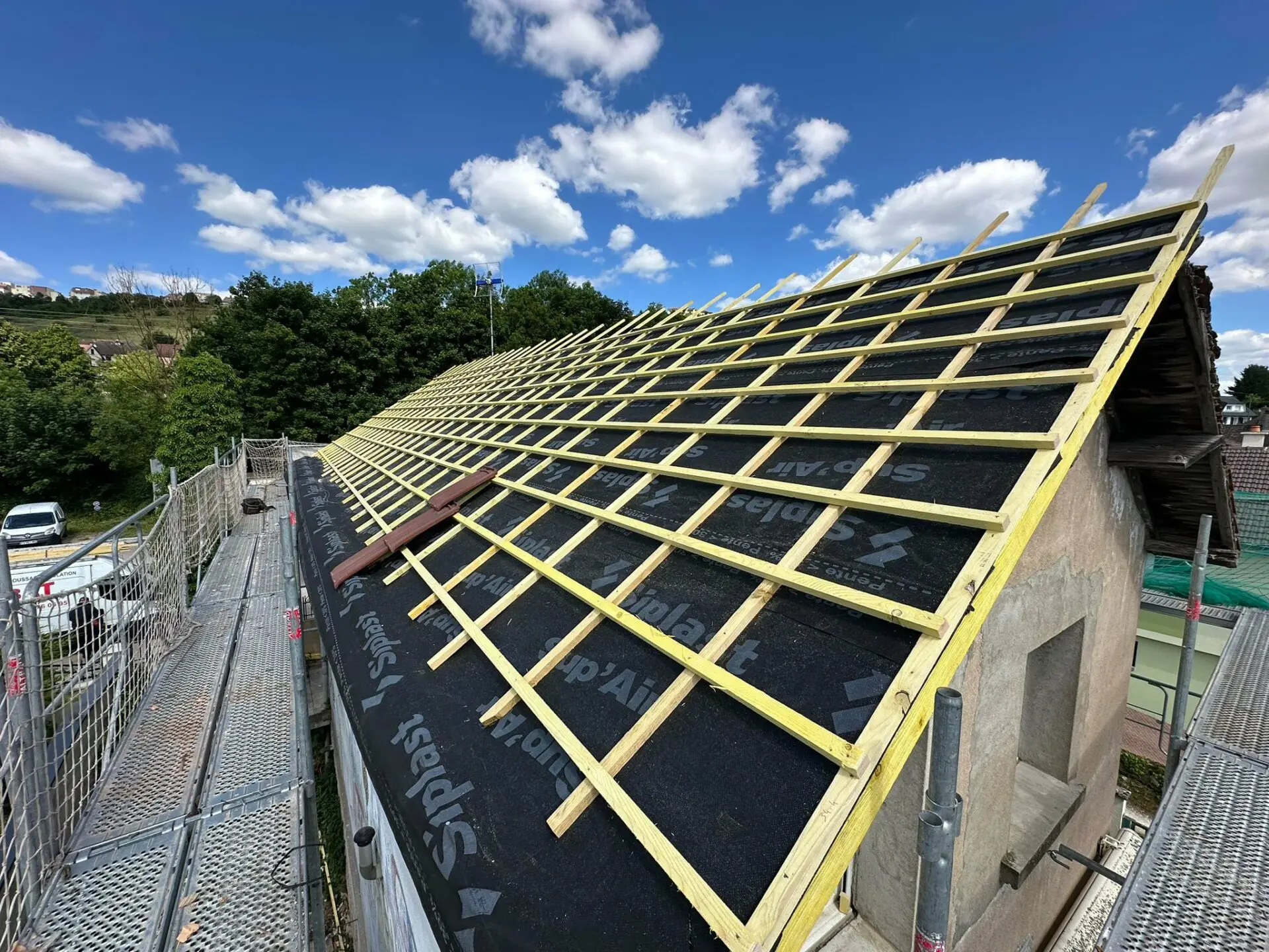 Nous avons réalisé la rénovation complète de la toiture d’une maison d’habitation avec le remplacement de la couverture en tuiles mécaniques.